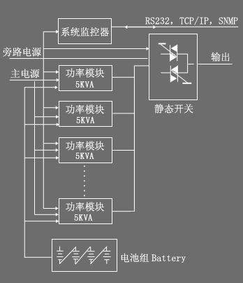 产品概述: 随着通信与网络技术的蓬勃发展,网络化、集成化趋势正以前所未有的速度和深度影响着我们的生活。UPS电源在网络系统、智能大厦等项目的集成、各行业的实时监控、运算系统供电质量等项目中要求变的越来越高。而传统的UPS系统存在单机故障率高、可扩展性差、可管理性差、维护成本高昂等种种弊端,市场已强烈需要新一代更具精密性与综合性、更能灵活管理、更安全可靠的网络UPS登台演绎。 HRTN1系列模块化UPS电源,正是引用先进高科技技术作为电源保护新概念而推向市场的绿色模块化UPS,其具备的卓越优势不仅仅是智能型的电源保护系统,除了包含传统UPS的整流、滤波、充电、逆变器的装置外,还采用了平均电流控制整流技术、顺位主从同步控制技术和三阶正弦波逆变的新型概念技术,在降低运输及库存成本的同时可提供更高的效率、更灵活的机动性及更好的可靠性。