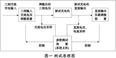 (二) 该装置在设计上采用模块化组台结构,体积小、重量轻,方便车载运输及在各变电站移动检测。 (三) 装置由系统主机装置、交流电压调整装置组成,如下图所示。采用微型计算机控制技术,通过调节被试充电机的交流电压及输出负载,同时系统主机自动进行采样计算,实现对充电机及蓄电池技术指标的检测。